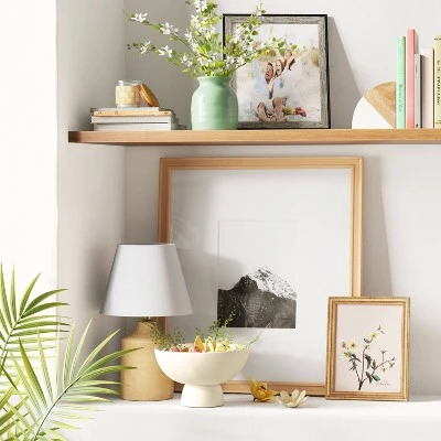 Display your favorite memory in this 10″ x 12″ Matt to 8″ x 10″ Single Image Frame Rustic Walnut/Black – Threshold™ from Threshold™. This wood-like photo frame detailed with unique rough-edging on the two vertical sides brings rustic beauty to your tabletop display. Complete with an easel back for standing support, this photo frame can be placed on a variety of flat surfaces and will blend well with any decor.