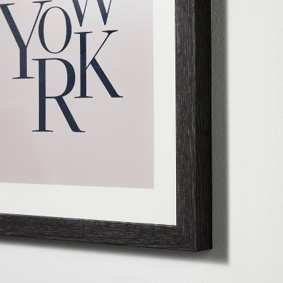 The 11″ x 14″ New York Framed Under Glass with Mat Dark Wood from Threshold™ designed with Studio McGee brings modern flair to your interior. A must-have addition to any room, this framed wall art features the writing ‘New York’ — giving your wall a little personality without overwhelming the decor in the room. This decorative wall art is encased in a sleek wood-like frame that offers clean style. Additionally, the neutral design of this Threshold™ designed with Studio McGee 11″ x 14″ New York Framed Under Glass with Mat Dark Wood seamlessly blends with any decor, making for an easy addition with plenty of flair to match.