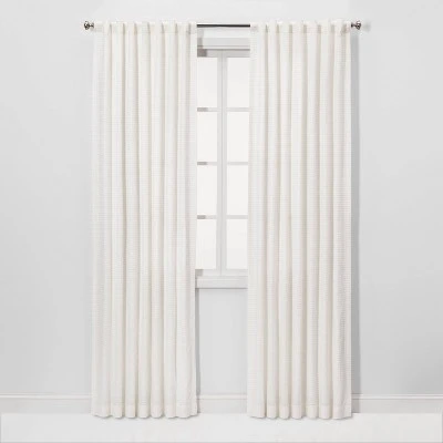 Create a clean, fresh look in any room of your house with this Honeycomb Light-Filtering Curtain Panel from Threshold™. The curtain panel features a stylish yet subtle honeycomb pattern in white that mixes easily with a variety of decors, and the light-filtering fabric lets just the right amount of light in while enhancing privacy. The curtain is machine-washable for easy upkeep, and the back-tab design lets you pair it with your choice of curtain rod for versatile styling. Whether you hang it in your living room, den or three-season porch, you’ll love the crisp look this woven panel adds to your space.