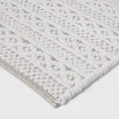Bring spa-like comfort to your bath space with this Chenille Bath Rug from Threshold™. This rectangular bath rug is woven from soft cotton to lend your feet a soft and warm feel, while the stripe pattern adds a pop of texture to your bathroom. Simply place it beside the shower or sink to bring style and convenient comfort to your space.
