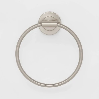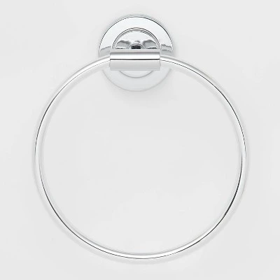 Add functional flair to your bathroom decor with the Clean Towel Ring from Threshold™. The strong SnapGrip®️ technology makes for a quick and easy installation. The clean and simple design of this towel ring easily coordinates with a wide range of bathroom styles. Towel ring is finished in polished chrome. Easily fitting small spaces, the sturdy 6.5-inch length towel ring holds up to 10 pounds and can hold more than one towel. Mounting components easily install with the included hardware and are concealed for a streamlined look.