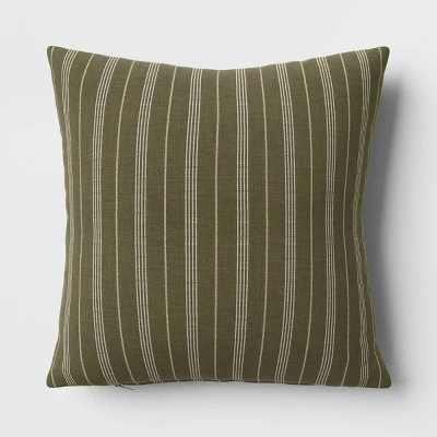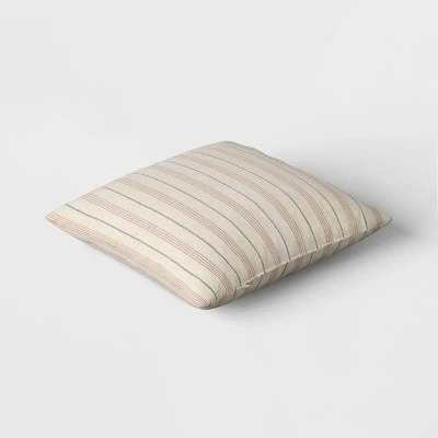 Add timeless, casual elegance to your living room or sitting space with this Cotton Flax-Woven Striped Square Throw Pillow from Threshold™. This double-sided throw pillow is decorated with woven stripes on a solid background to complement farmhouse, cottage or coastal aesthetics. Featuring a cotton-linen exterior with soft filling, the square throw pillow is sure to add the right amount of comfort and style to your sofa, chair or bench.