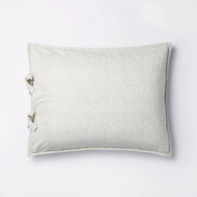 Bring the beauty of foliage to the top of your bed with this Decorative Border Cotton Slub Print Quilt Sham from Threshold™ designed with Studio McGee. This cream slub pillow sham features a light teal botanical print and a decorative border to bring added charm to your bedding. Made of 100% cotton fabric, it offers comfortable year-round use. Plus, it comes with string ties to help the pillow insert stay tucked in while allowing easy removal for cleaning. Pair with a matching quilt to complete your coordinated bedscape.