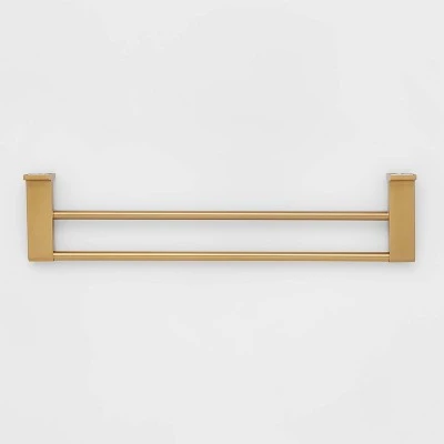 Give a modern finish to your bathroom with this Double Modern Towel Bar from Threshold™. This practical towel bar makes a great bathroom essential. It features a modern double bar design in a solid stainless steel finish that easily coordinates with a range of bath accessories and decor. This stylish towel rod easily fits well in most spaces, and is suitable for hanging your towels, robes and clothing in one place. Plus, it’s easy to install with mounting hardware. You can install it close to your sink, tub or shower cubicle for functional use.