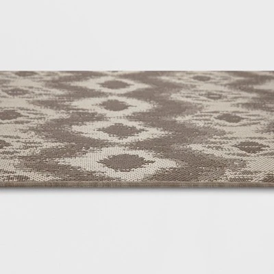 Create a comfortable and inviting spot with this Ikat Outdoor Rug from Threshold™. This rectangular woven rug features a taupe geometric striped design and a flat-pile construction that will withstand everyday wear and tear even when placed in high-traffic areas. The weather-, stain-, and fade-resistant design of the woven rug makes it a timeless complement to your outdoor decor, and it can easily be used indoors. Lay it down as a beautiful focal point for your al fresco dining space, or tuck it under the coffee table in your living room.