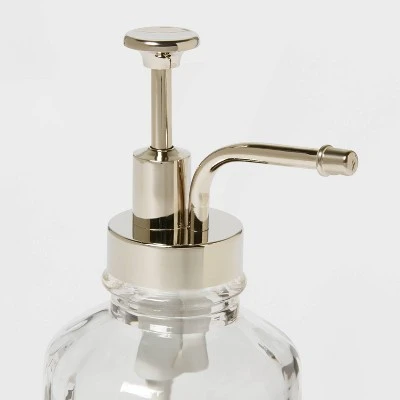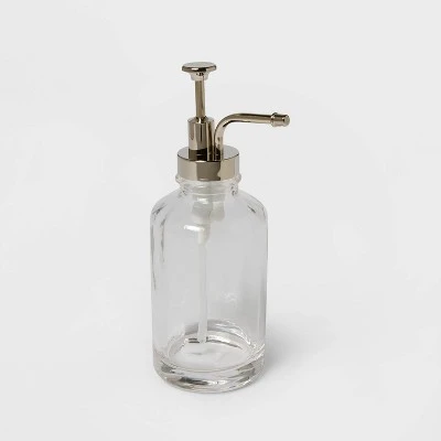 Revive your bathroom decor with the Oil Can Bath Coordinates from Threshold™. Made from glass, both the decorative soap pump and soap dish instantly fill your bathroom with decorative flair. With an easy-to-use pump, the glass soap dispenser delivers the right amount of soap or lotion to your palms, pairing with the dish for a functional and stylish addition to your bath space.