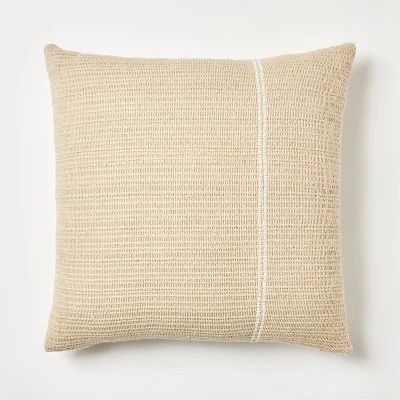Instantly revitalize any space in your house with this Oversize Embroidered Striped Throw Pillow from Threshold™ designed with Studio McGee. Made from a soft cotton fabric with comfortable filling to provide plenty of cushioned comfort, this decorative throw pillow features an allover ribbed pattern with embroidered stripes on the sides for a tastefully textured look. Toss it on your favorite armchair or arrange it with colorful throw pillows on the couch to create an inviting look in your home.