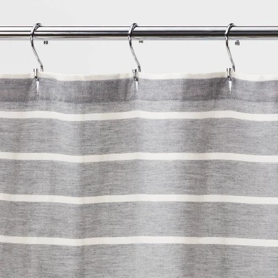 Bring timeless appeal to your bath space with the Stripe Shower Curtain from Threshold™. This standard-size shower curtain features dobby construction for a touch of subtle texture, and its elegant striped pattern in neutral shades mixes with any decor style. Made from 100% cotton, this machine-washable shower curtain helps prevent water from spilling onto your floors while showering, and it’s finished with a buttonhole top that allows for easy installation. Complement it with matching accessories for a cohesive look, or add eclectic accents for a touch of personal style.