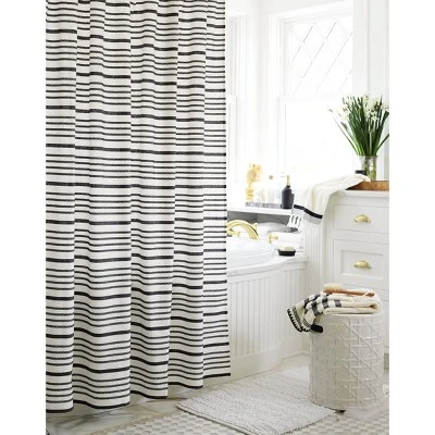 Update your bath space with the Multi-Stripe Shower Curtain from Threshold™. The versatile shower curtain features a black and white striped pattern that creates a classic look while making it easy to match with other decor styles. The cotton shower curtain helps prevent water from spilling onto your floors while showering, and it’s finished with a buttonhole top that allows for easy installation— all you need is a set of curtain hooks or rings. Coordinate with matching decorative pieces or incorporate pops of color for a vibrant theme.