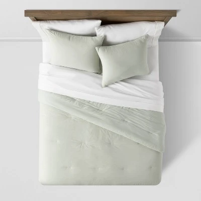Transform your bedscape into a restful retreat with this Washed Cotton Sateen Comforter & Sham Set from Threshold™. This bedding set includes a pillow sham and a soft-filled comforter made from sateen weave cotton to offer soft, all-season use. Allover quilted detailing decorates the comforter and matching sham to add to your sleeping nook a graceful look that mixes easily with other styles while being striking enough to stand out on its own.