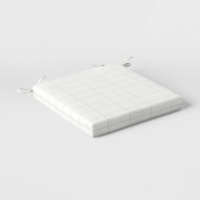 Fill your outdoor seating space with comfort and style with this Woven Grid Outdoor Seat Cushion from Threshold™. Made from a water-repellent fabric to withstand the elements, this outdoor seat cushion features a soft fill for comfortable seating. The back ties allow you to secure it to your outdoor chair frame, while the removable cover makes it easy to clean. Showcasing a woven grid pattern on a solid background, it’s sure to add a touch of modern style to your outdoor seating space. Scotchgard™ Protection is specially formulated with sustainability in mind. They can stand up to the wettest conditions and they’re carefully designed to repel and resist nearly all water based stains.